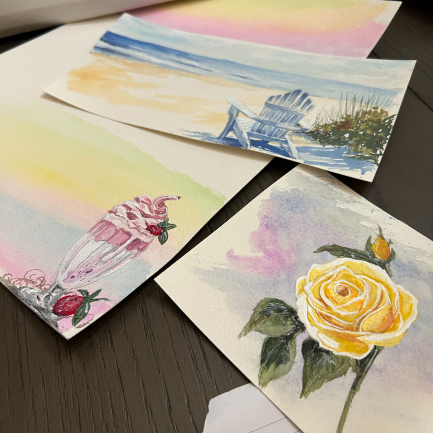 Every label begins with a brushstroke and a story. Each design is hand-painted with the person in mind — not simply to reflect the fragrance inside, but to capture a memory, a favourite place, or a small detail that made them unforgettable. A rose that bloomed in their garden, a seaside view they loved, or a sweet indulgence that always made them smile. These images are more than decoration — they’re keepsakes of the lives that inspire our candles, carrying with them love, connection, and remembrance.